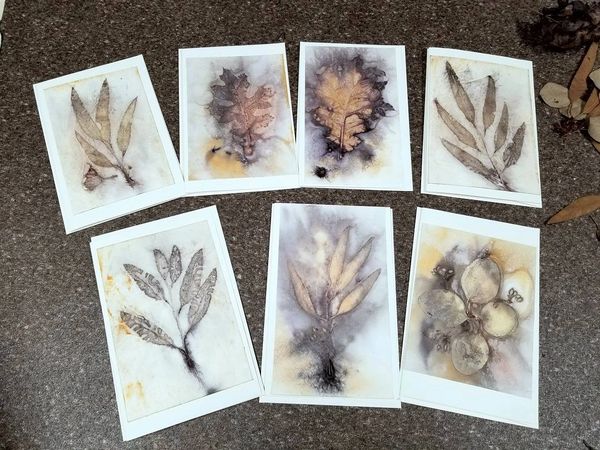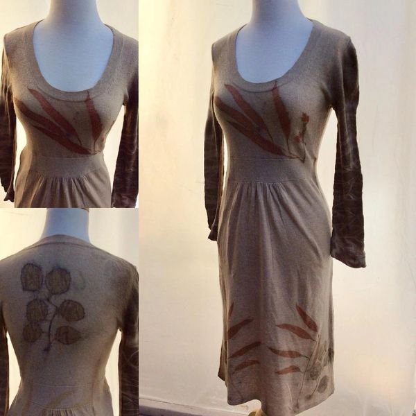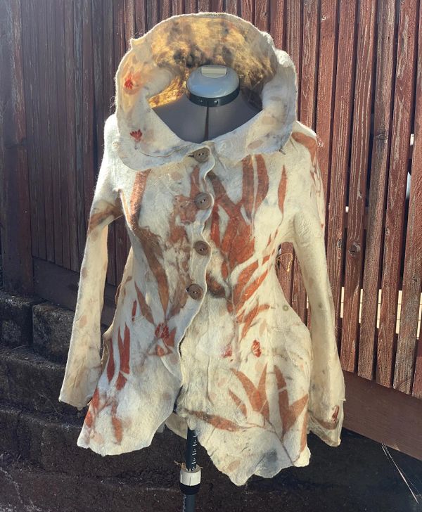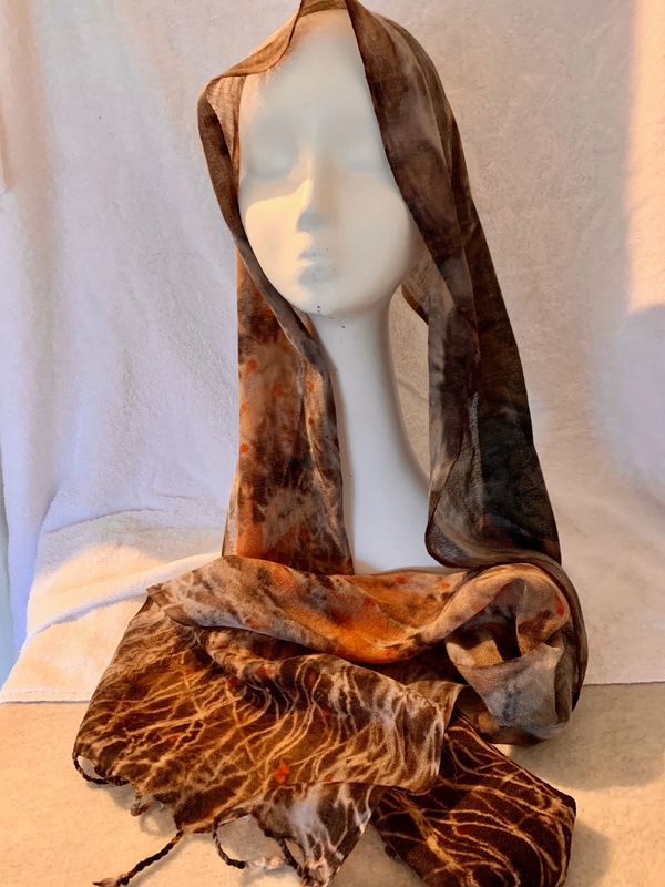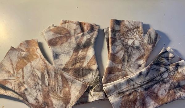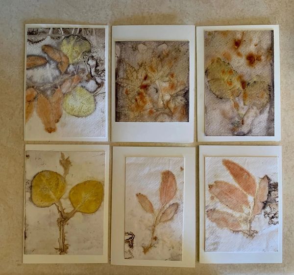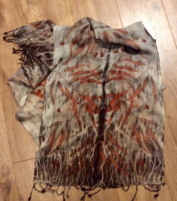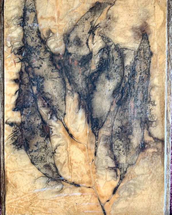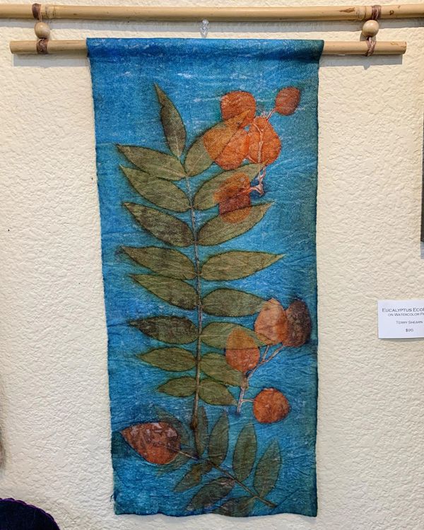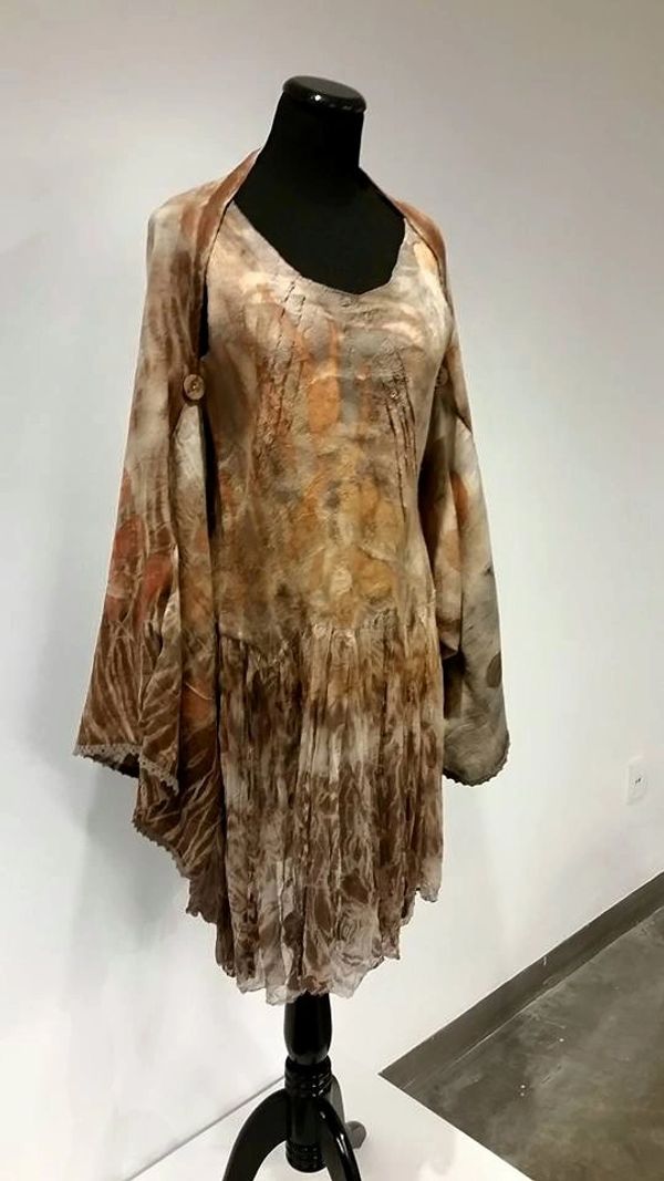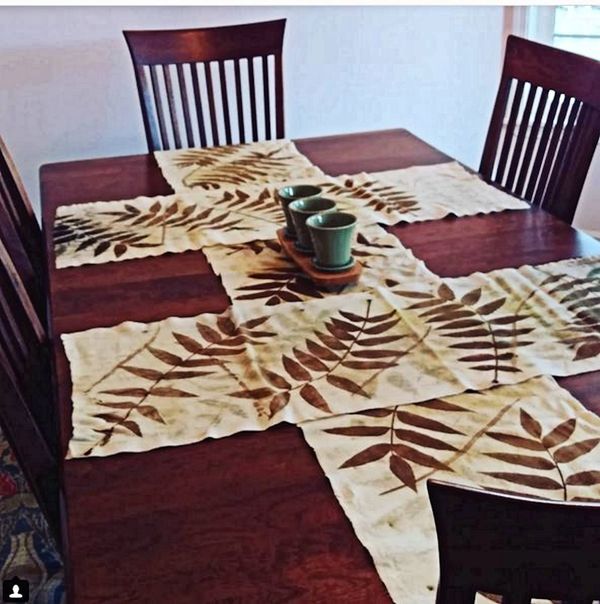 Dying using leaves, bark, stem of botanicals. My favorites are Eucalyptus, Catalpa, Casuarina, Walnut, Maple, Oak and Gingko. I also love to experiment with new finds, you just never know! While some leaves produce extraordinary color others have beauty in their shape, making them a lovely resist for traditional dye-work.
