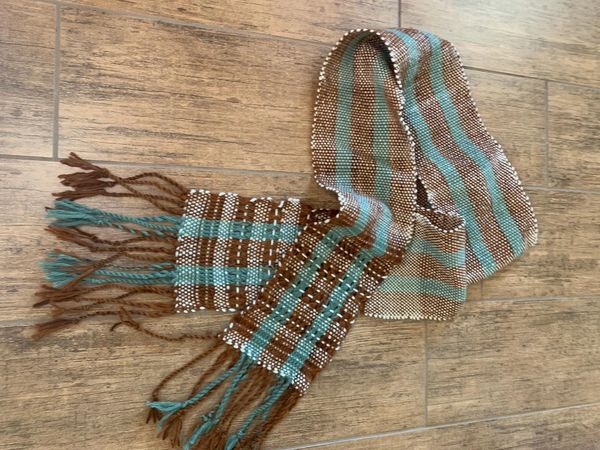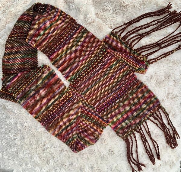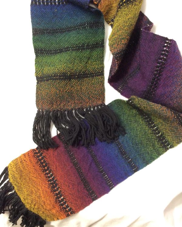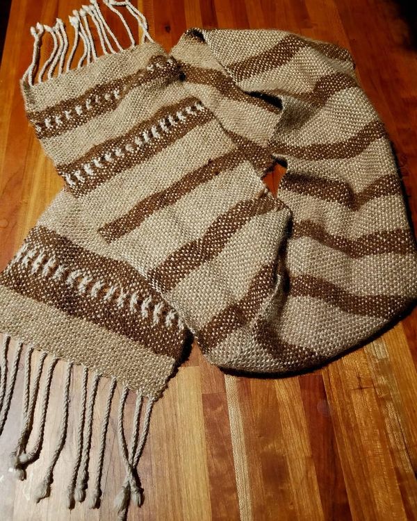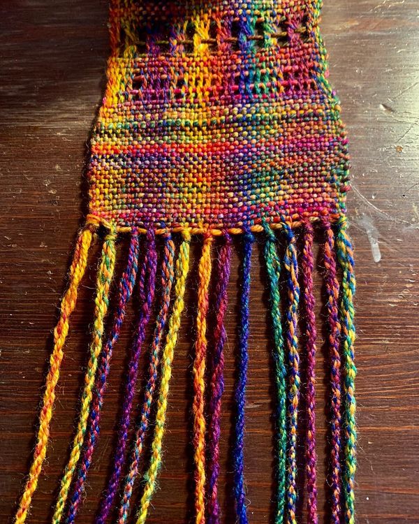 I recently downsized from a large floor loom to a rigid heddle loom that I can take with me on my travels. I love to weave! It's a good cold weather project that can be done inside while hanging out with my puppy. I love trying new techniques and always use fine quality wools, alpaca and silk for my weaving.